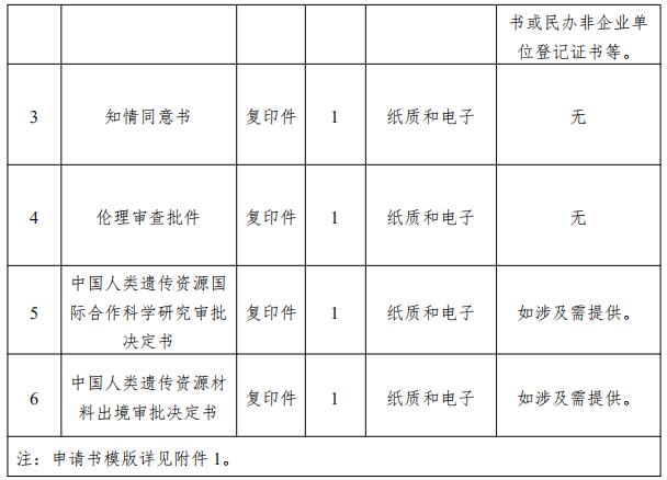 十二、行政許可證件 中國人類遺傳資源材料出境審批決定書(樣式見附件 2)。