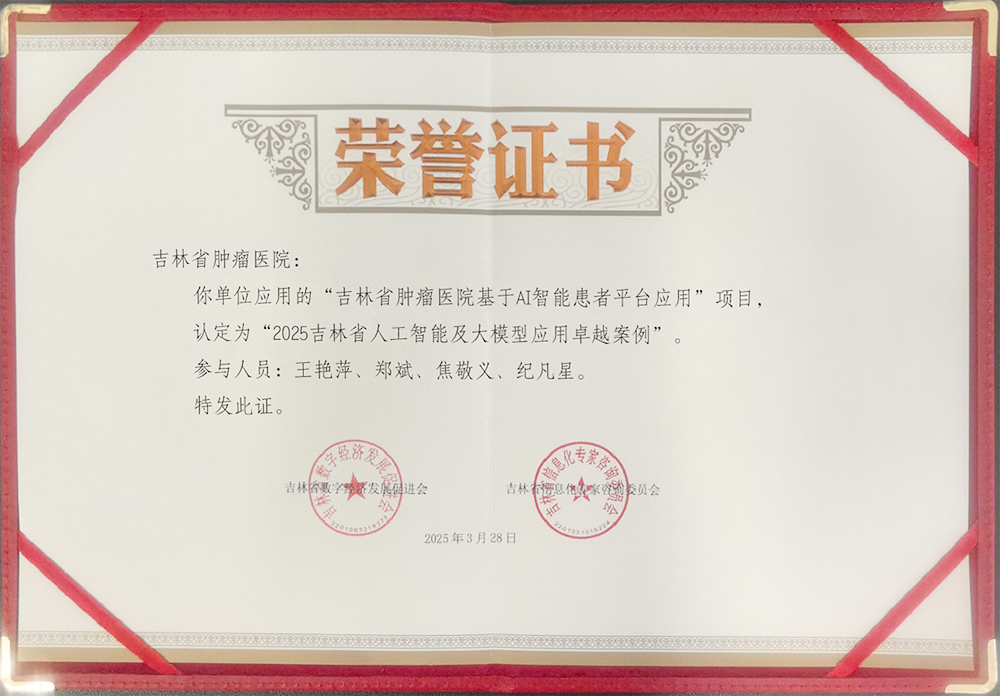 喜報(bào)|“吉林省腫瘤醫(yī)院基于AI智能患者平臺(tái)應(yīng)用”項(xiàng)目獲評(píng)“2025吉林省人工智能及大模型應(yīng)用卓越案例”