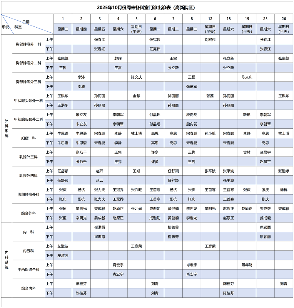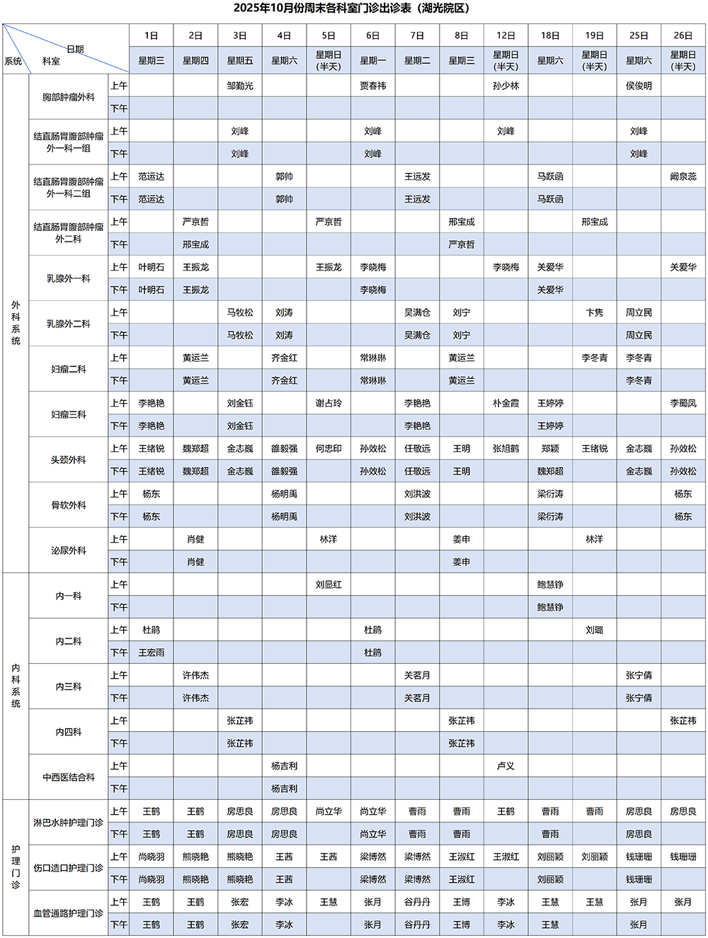 2025年10月份周末各科室門診出診表(僅供參考 以實際出診情況為準(zhǔn))